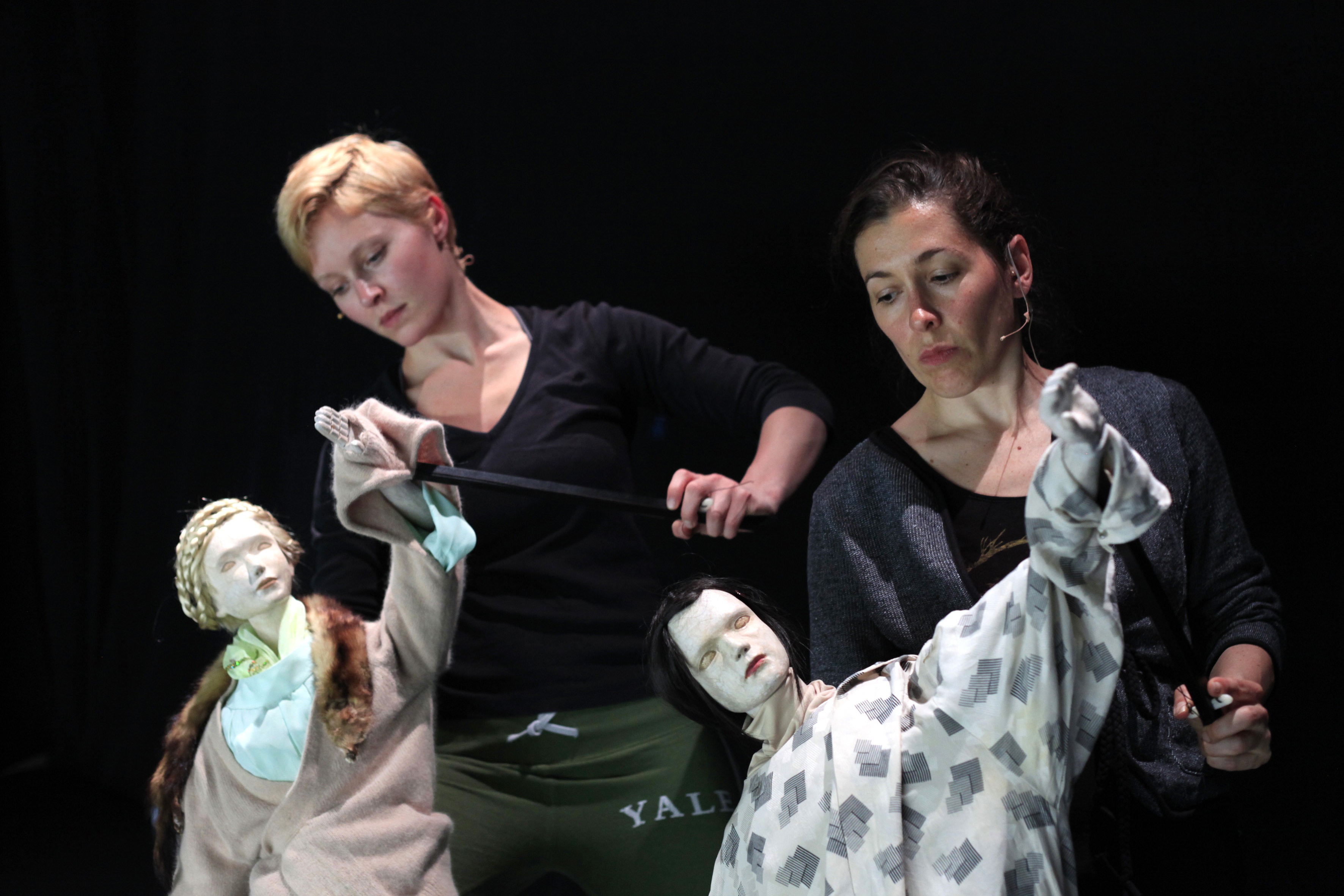 Vóór 'Antigone', hun eerste voorstelling samen, hadden Ulrike Quade en Nicole Beutler elkaar nog nooit ontmoet. En dat is eigenlijk best raar, realiseren ze zich nu. Allebei van Duitse origine en ongeveer even lang in Nederland, beiden vrouwen in het theater - behoorlijk succesvol, ook internationaal - én allebei geïnteresseerd in het werken met verschillende disciplines. Maar hun eigen disciplines lagen toch net iets te ver uit elkaar: Ulrike Quade maakt beeldend theater met poppen, Nicole Beutler komt uit de danswereld en maakt dansperformancestukken. Beutler: "We bewogen ons in afzonderlijke theatercircuits, en dan kom je elkaar niet zo snel tegen".