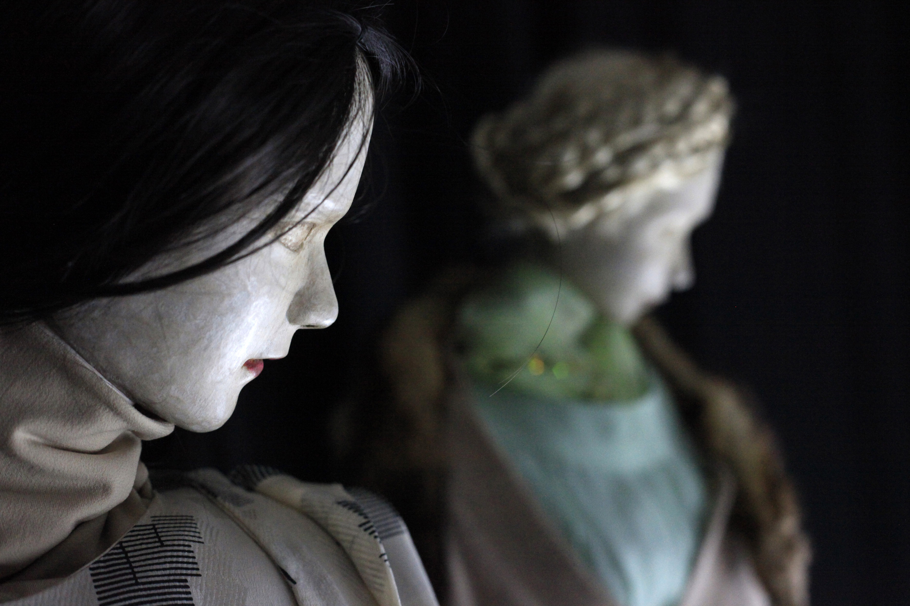 Referenties naar de geschiedenis vonden ze ook in bunraku, een traditionele Japanse vorm van poppenspel die Quade in Osaka bestudeerde. Hierbij wordt elke pop voortbewogen door drie poppenspelers die in het zwart zijn gekleed en deels zichtbaar, deels onzichtbaar zijn voor het publiek. Een vorm die veel ruimte biedt voor choreografie, meent Beutler. "De poppen hebben een klein hoofd en kleine handen, de rest is van stof. Als je daarmee beweegt wordt als vanzelf dans gesuggereerd."